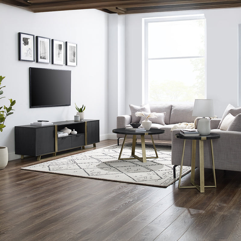 In stockIntroducing the CAPRI Entertainment Unit, TV Cabinet, TV Unit in Black Oak, Gold by Criterion - a luxurious addition to transform your living room ...