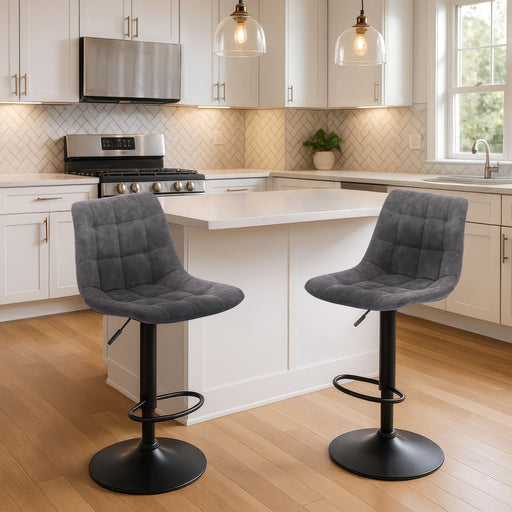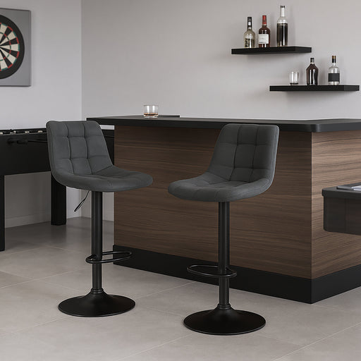 Harry Bar Stools Gas Lift Black Metal Grey PU Pair by Urban Style