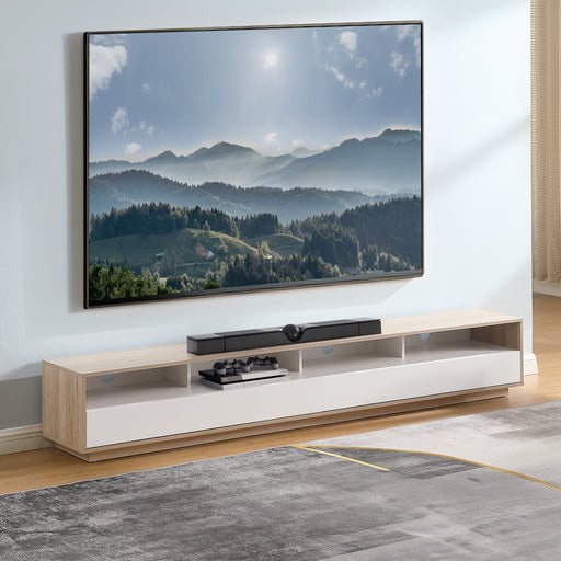 Suave Low Line TV Unit 2200mm , Sound Bar Shelf, Oak and White by Tauris