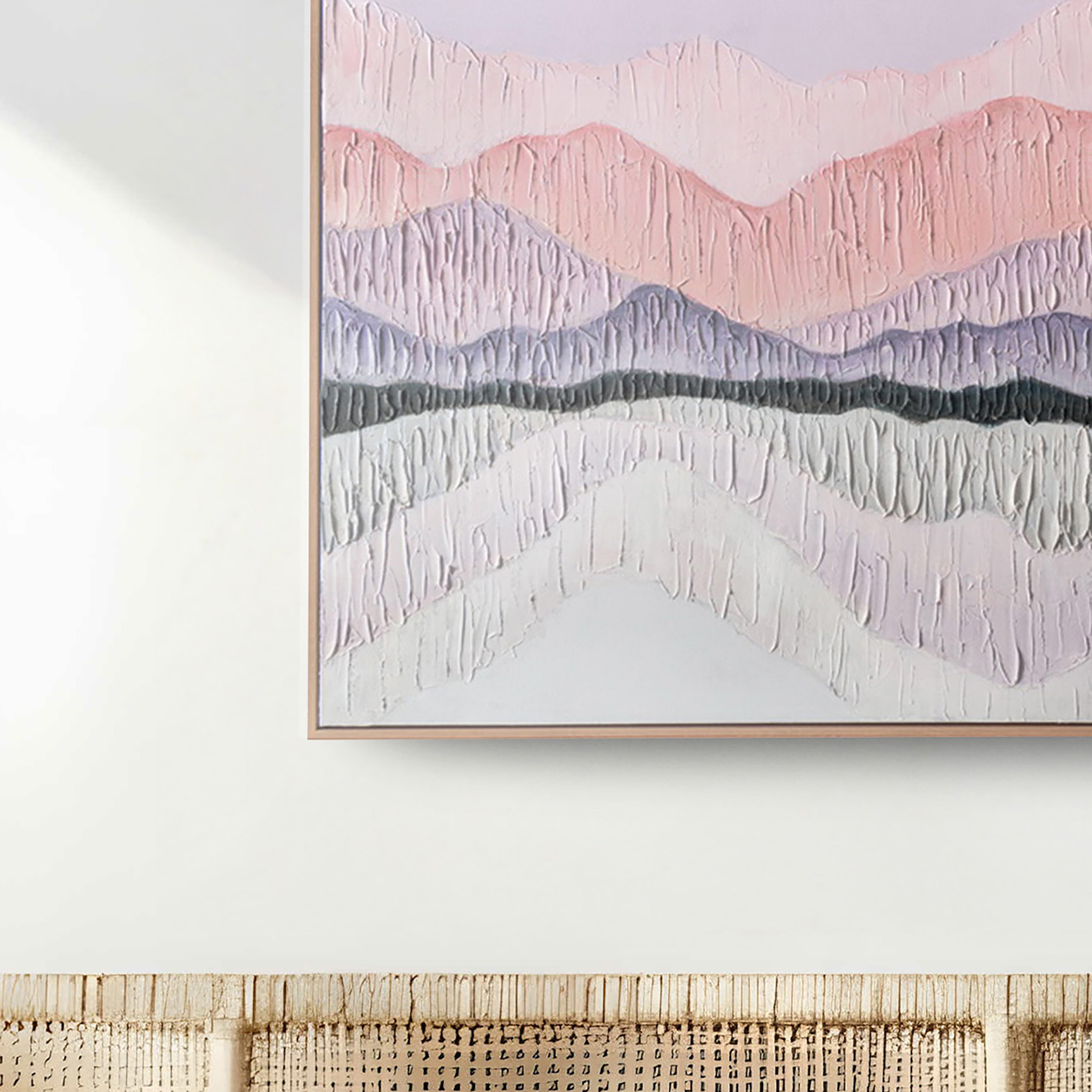 Introducing the Urban Style Brushmarks Oil Painting, featuring a hand painted canvas on a sturdy timber support frame. The 3D textured oil painting adds depth and dimension to the pink landscape perfectly. The wood look plastic décor box frame is expertly fitted around the stretch canvas painting to further add a level of depth and complexity to your art piece. Elevate your space with this unique and expertly crafted piece.