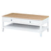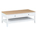The fresh white cabinet of the Sorrento coffee table adds a level of sophistication and style to your home as it contrasts nicely with the natural finish of the wood top. This piece will fit nicely in your living room or entertainment space.