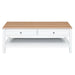 Experience luxury and sophistication with our Criterion Sorrento Coffee Table. Crafted with real white oak wood veneer and a natural finish top, this table exudes elegance. The solid MDF construction, KD Hevea wood legs, and metal handles ensure durability. Two drawers with telescopic runners and a bottom storage shelf provide ample storage space. Semi-assembled for your convenience. 12-month warranty included.