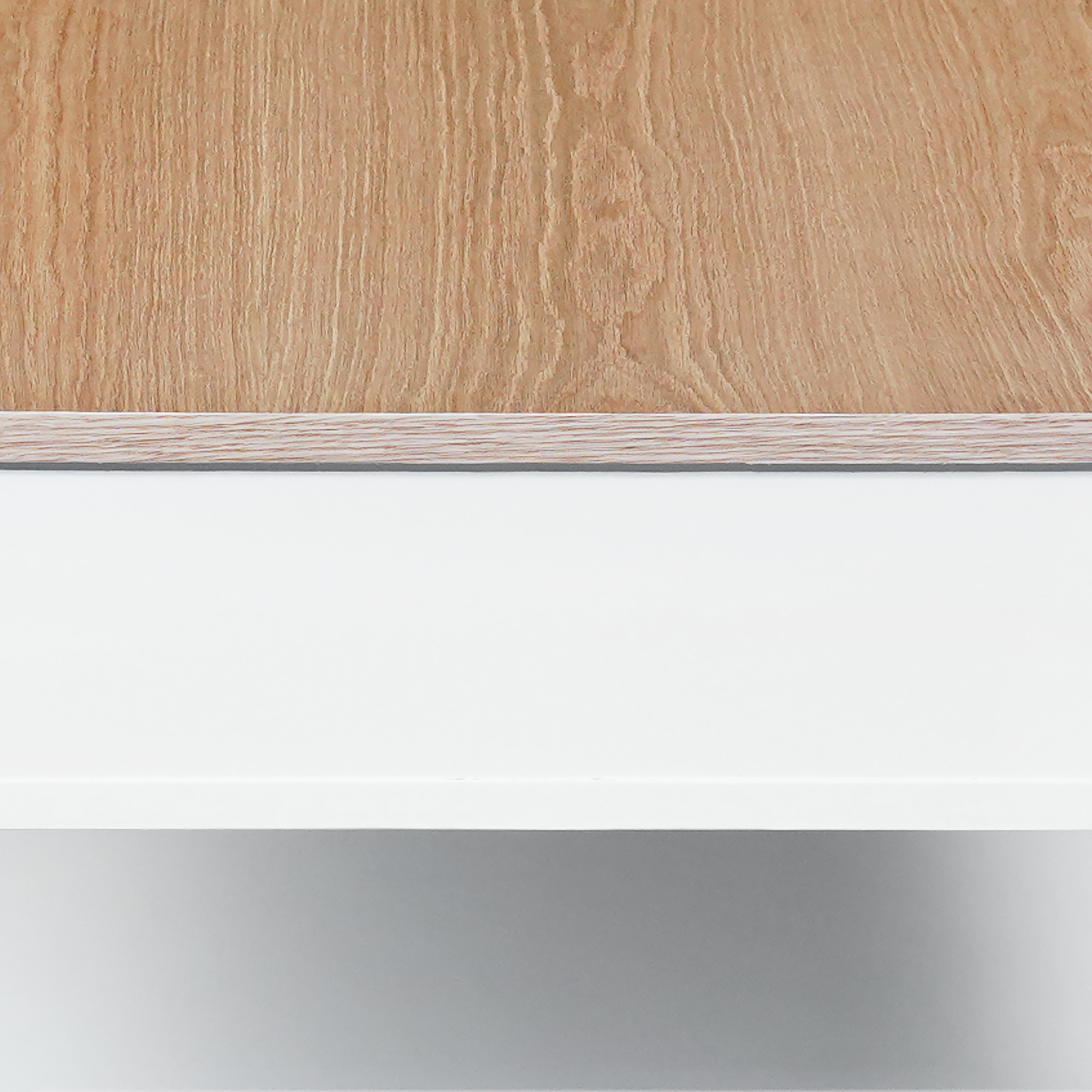 Primary Colour: White Oak Wood Veneer with Natural Finish Top, White painted cabinet.