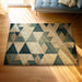 Make a bold statement with the Geometric Printed Rug from Urban Style. This vibrant 160x240cm floor rug features layered triangles in varying tones of blue, cream and taupe, designed to bring a contemporary edge to any interior.