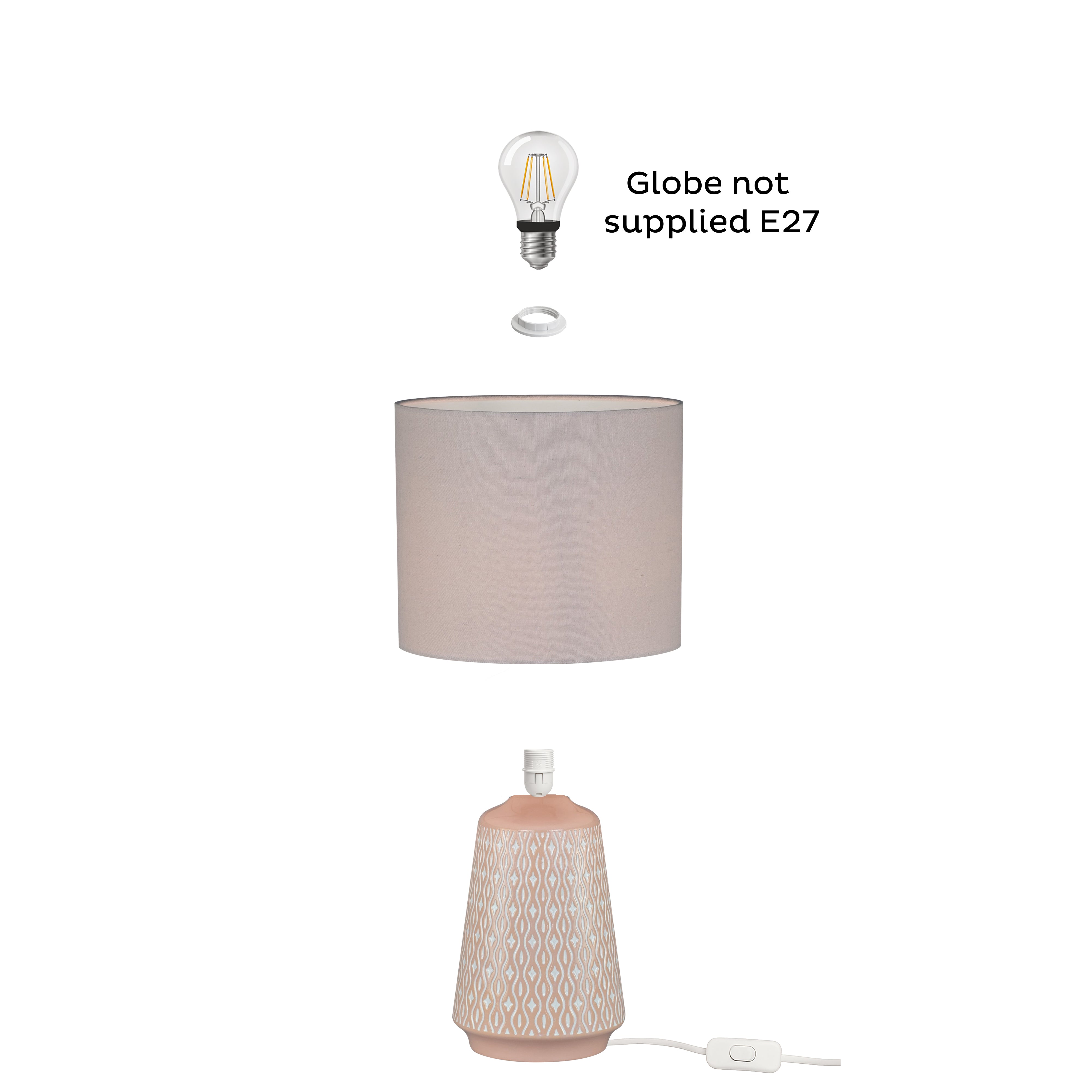 The Inga Table Lamp Terracotta by Urban Style elevates any space with its blend of minimalist design and practical functionality. Crafted with a ceramic base adorned in a modern repeating pattern, its warm terracotta tones evoke a sense of calm and grounded elegance. This carefully designed base pairs seamlessly with a fabric drum shade in complementary hues, providing a soft, diffused light ideal for creating a welcoming atmosphere. Equipped with an inline switch, the lamp offers effortless control, making it perfect for bedside tables, living rooms, or home offices. Its understated aesthetic complements neutral palettes and Scandinavian-inspired décor, adding both texture and warmth to your interior. Whether placed as a statement piece or a subtle accent, the Inga Table Lamp enhances your living environment with timeless style and gentle illumination.