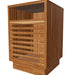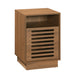 Behind the uniquely styled slotted door is an internal shelf, ideal for keeping personal items, chargers, or accessories out of sight. Above, an open shelf space allows you to style your favourite books, décor, or remotes for easy access.
