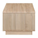 The Tauris HOVERCTLO Coffee Table is a bold expression of modern form and functional design. Finished in a fresh and grained light oak melamine veneer, this center piece effortlessly balances storage versatility with elegant simplicity. Its commanding silhouette is anchored by a contrasting white-painted drawer front, designed with a discreet cut-out handle for a clean, streamlined look.