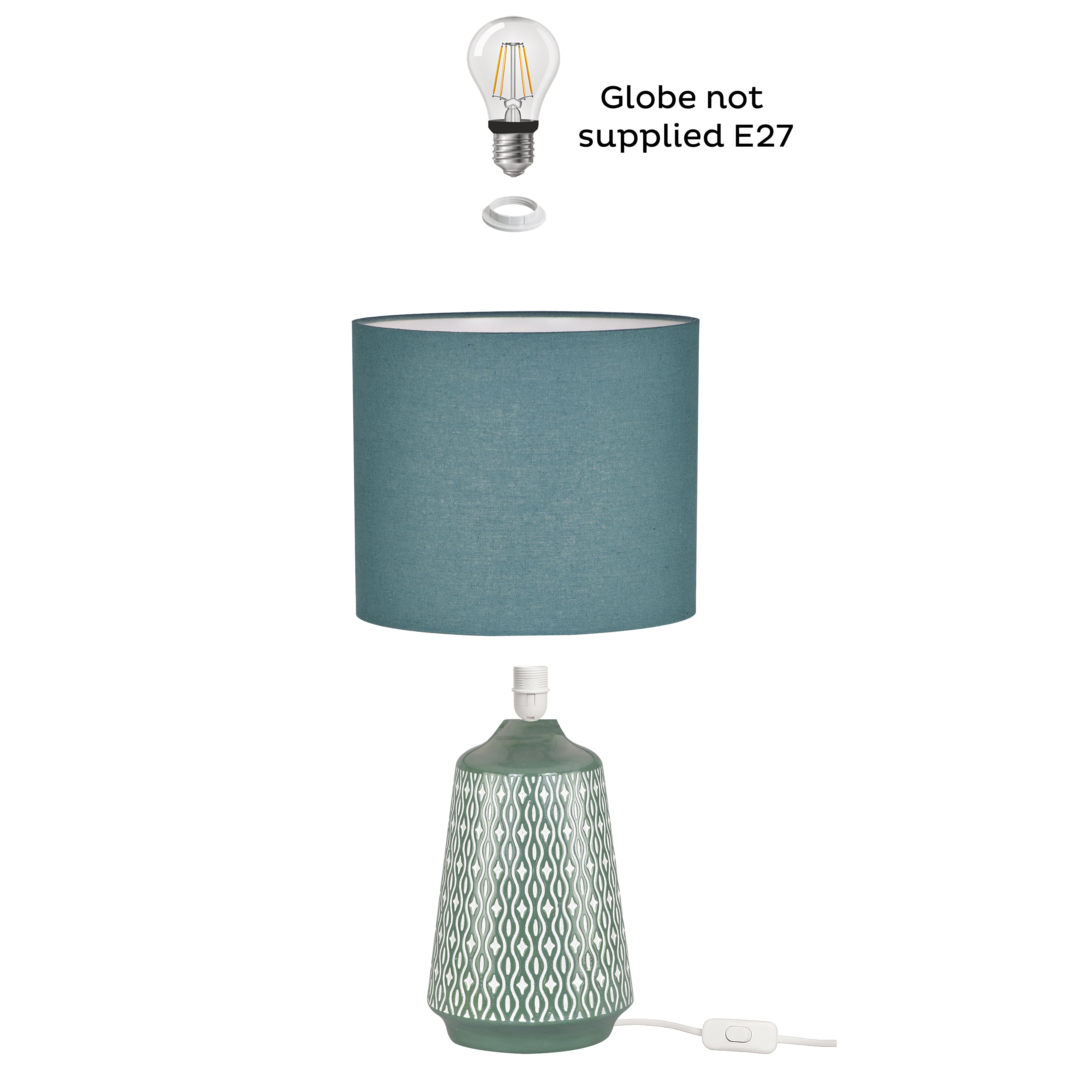 Finished with a green-toned fabric drum shade and inline switch for convenience, Inga brings both texture and warmth to your lighting.